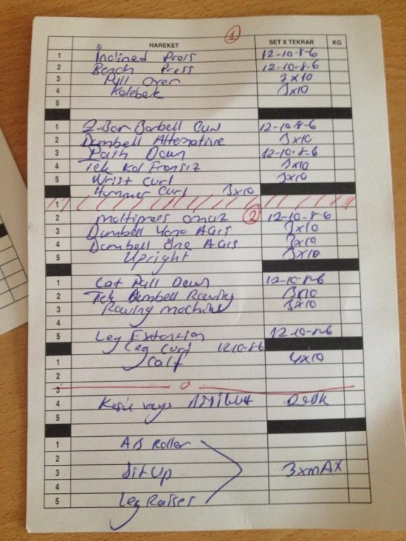 1.ay programının ilk günü her hareketi 2x8 2. antrenmanda normal olan 3x8 e kademeli olarak ulaşın ki ağrı oluşmasın