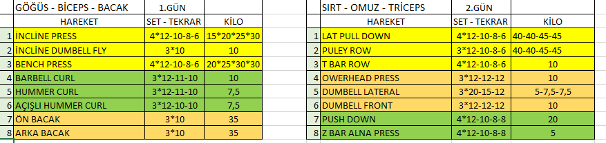 Arkadaşlar merhaba, 3 aydır full body antrenman yapıyorum ve daha öncesinde de kısa kısa spor geçmişim var. şimdi 3 bölge sistemine geçiyorum ve antrenman programımı değerlendirmenizi istiyorum. Yaşım 30, antrenmanı p.tesi-salı-çarşamba off-perşembe-cuma-hafta sonu off şeklinde yapmayı planlıyorum.